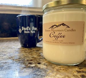 Boston Mountain Candles is a small, family-owned candle business near Devil’s Den in the Boston Mountains of Washington county, Arkansas. Our 100% USA soy wax candles are curated, tested, and hand-poured in small batches in our home studio. USA grown and produced soy wax is all we use, no paraffin blends, no additives. We use only premium phthalate-free fragrance oils as well as lead & zinc free cotton wicks, all produced in the USA. Unique, nature-inspired scents are our specialty. Contact us to discuss wholesale options for our sustainable, Arkansas-made candles.