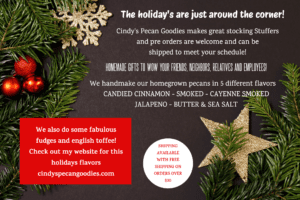 Plus a variety of fun homemade fudges and english toffee. We also offer pecan cracking, just give us a call and let us know you're coming!
