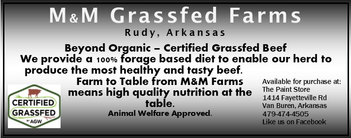 A complete selection of M&M Farms Certified Grass-fed beef products, recipes and helpful hints are available daily at The Paint Store, 1414 Fayetteville Road, in Van Buren, call 479-474-4505.