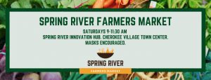 Spring River Farmers' Market features locally grown/made foods and handy-crafts on Saturdays in Cherokee Village Town Center starting Memorial Weekend