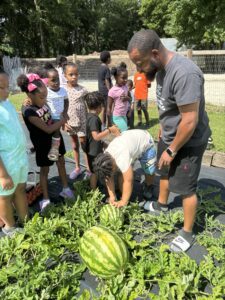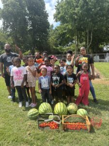 We grow a variety of vegetables. Watermelon, Cantaloupe, Sweet corn, peas, okra, tomatoes, cucumbers, and squash.